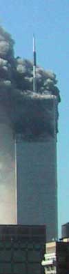 America Under Attack: A New Yorker's Account by Andrei Rublev Tuesday, September 11, 2001 I wake up earlier than usual, around 8:30 AM I guess because, unconsciously, I know I have to make sure to get a plane ticket to leave tonight as I have missed last night's flight to Nice. Everything goes pretty smoothly with Delta and Air France and before 9 my flight is booked. As I hang-up the phone I hear people shouting in the street. Not the usual Greenwich Village street shout though. It is the kind that you hear when something big happens. I look out the window expecting to see a bus in a deli or a truck laying flat on the street. All I can see is people running north and south, traffic stopped with drivers and passengers in the street, looking south. I have a busy day ahead of me so I decide to ignore the incident and to go back to my phone and my packing agenda. As it is a same-day plane ticket I have to retrieve it at a Delta counter. The nice Delta girl suggests over the phone that I go to a Delta office in the city rather than at JFK because Air France and Delta are not in the same terminal. I know that and it makes sense to follow her advice. The yellow pages list 4 or 5 offices in Manhattan. I have used the one on 42nd street several times but I notice that the World Trade Center has one too. It might be closer than 42nd Street and I haven't visited the Twins in a while. Before heading down I call a limo service to reserve a car to take me to the airport tonight. I am told that all bridges and tunnels are closed. I think it's a strange commercial trick of the company and I head down to the subway station. As I hit the street I see a large crowd and a definitive unusually chaotic state. There seems to be something really unusual in progress. I walk one block down to check out what could cause such an interest and see nothing. I'm not the kind of person who stares at accidents anyway so I head into West 4th Street subway station. I have my Metrocard in my in hand when I hear an official subway guy saying that all trains are stopped and that there is no subway working in New York. Chaos is growing. I rapidly rule-out taking a cab and consider for a minute riding my bike down to the World Trade Center. My schedule being already pretty disturbed I might as well find-out about the cause of this chaos. As I walk down 6th Avenue I overhear a man telling a woman that the Twin Towers have been damaged. This is when it hits me. I glance at the downtown skyline and I see the top tier of the North WTC tower in flame! This is hard to accept. The typical case in which I don't believe what I see. My body starts to shiver. Getting back to my information source I learn that the southern tower already collapsed. Now this is just too much. Can such a building ever go down? I look south again but there is too much smoke coming out of the North tower for me to see the other tower. The woman to whom the man is talking is now crying. This is not an exercise. I rush back up, turn on the TV and hit record on my VCR. I browse the first 10 channels frantically and I have immediate confirmation of the disaster in progress. Several commercial planes have been high-jacked and flown into US buildings! WAKE UP! Boeings are actually being thrown at some the Free World's most cherished symbols! You are not dreaming. This is the real thing! I rush on my roof and have re-confirmation. I just cannot believe what I am seeing. I take more pictures. I go back to the roof a couple of times where I witness the collapse of the North tower. I am surprised to feel only little he ground shakes. I hear on TV people comparing this attack to the one against Pearl Harbor. The first couples of thoughts that come to mind is that the WTC are office buildings, not war machines and also that the Hawaiian attack killed 2400. It is almost certain, unfortunately, that today's casualties are going to be much greater. Then I realize that this might not be it. The attack could still be in progress. CNN tells me that the part of the Pentagon that was distroyed was the home of army intelligence. I imagine the worst. Now that the introduction is done, that the army is decapitated, it is time for a full-blown nuclear attack against the most important cities in the US. New York could very well be the first or second target. I run around my place like a madman grabbing dry food, image recording equipment, official papers and a bomber jacket. I place all this in the center of the room on the floor and try to get my thoughts together as the TV tells me that the government is not yet at risk but that the President is not getting back to the White House but to a military base. This is not an exercise. I try to call my girl-friend and my relatives abroad without success. When I finally get a line, the numbers dialed are busy. Cell phones are not working. Christian calls me from Switzerland. I can't help crying. It is now 12:30 PM, I am slowly calming down but it is definitely a time for superlatives. 1:07 PM In his speech, President Bush tells us two times to "Make no mistake". 1:27 PM Air Force planes are flying over New York City. They are the only ones in the sky. 1:38 PM Air Force planes are flying over the City again. 1:46 PM Two US aircraft carriers are headed towards New York City. 1:48 PM Top US government players are now in undisclosed locations. 1:51 PM People are playing ball in the West 4th Street court. Feels strange and reassuring at the same time. 2.04 PM It hits me again: there is no more Twin Towers in New York. I will not see them any longer when I rollerblade on the West Side or when I cross the Brooklyn Bridge. I am very sad. I was so attached to them, always trying to decide if they were my favorite building in the City. Their plural made them so attractive. 2:12 PM Jacob Javitz Center is converted into a dispatch center. 2:14 PM I start believing that the attack is over and that New York City will not be wiped-out of the planet today.